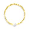 Enhance your natural beauty with the Aphrodite Bracelet. This elastic gold or silver bead bracelet features a stunning bezel set stone that will add a touch of elegance to any outfit. Embrace your inner goddess and radiate confidence with this timeless accessory.