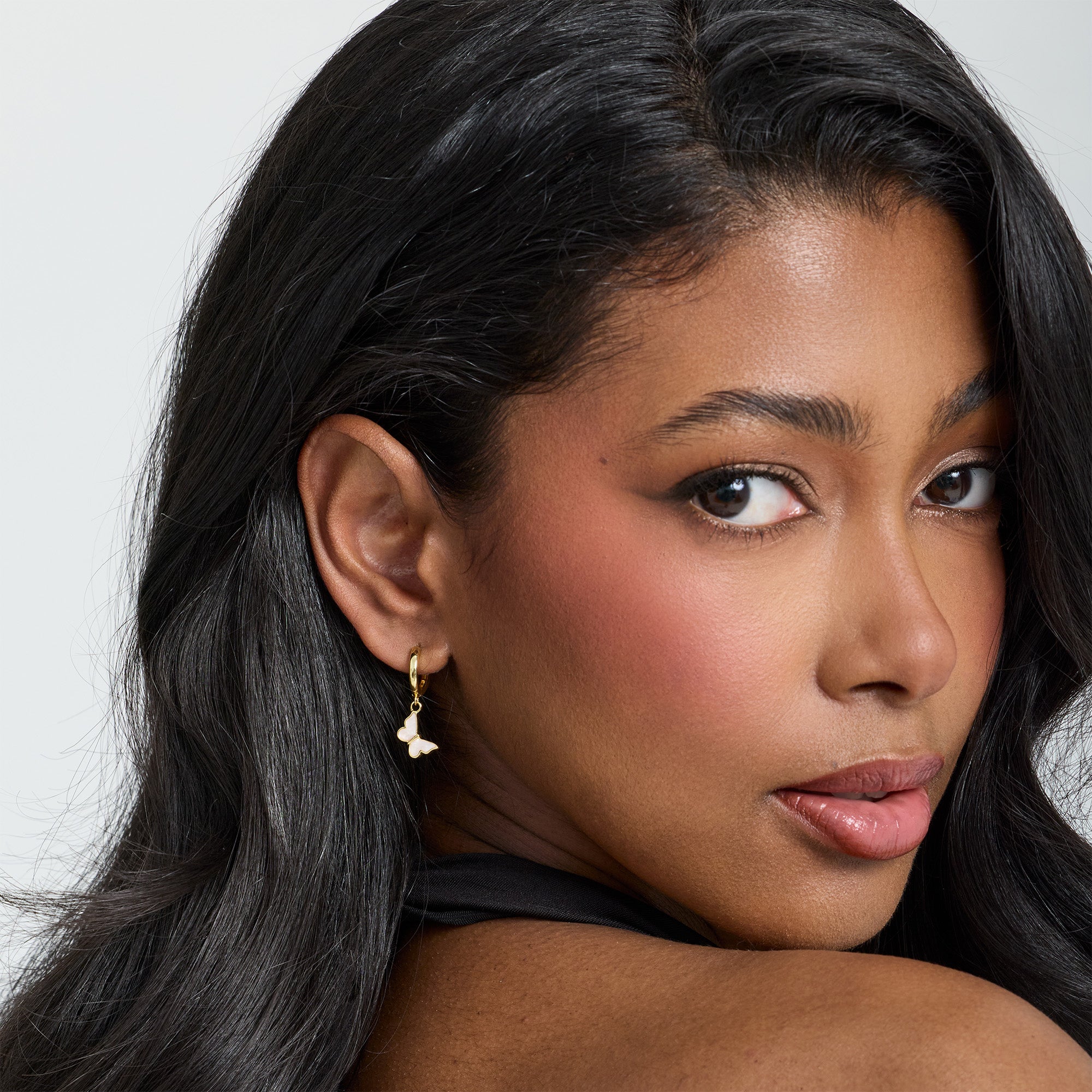 Say hello to your new everyday obsession. Our Butterfly Hoops are the cutest way to add some flirty charm to your fit. These dainty gold hoops features a dreamy butterfly charm that dangle just right ?C lightweight. comfy. and 100% Instagram-worthy.