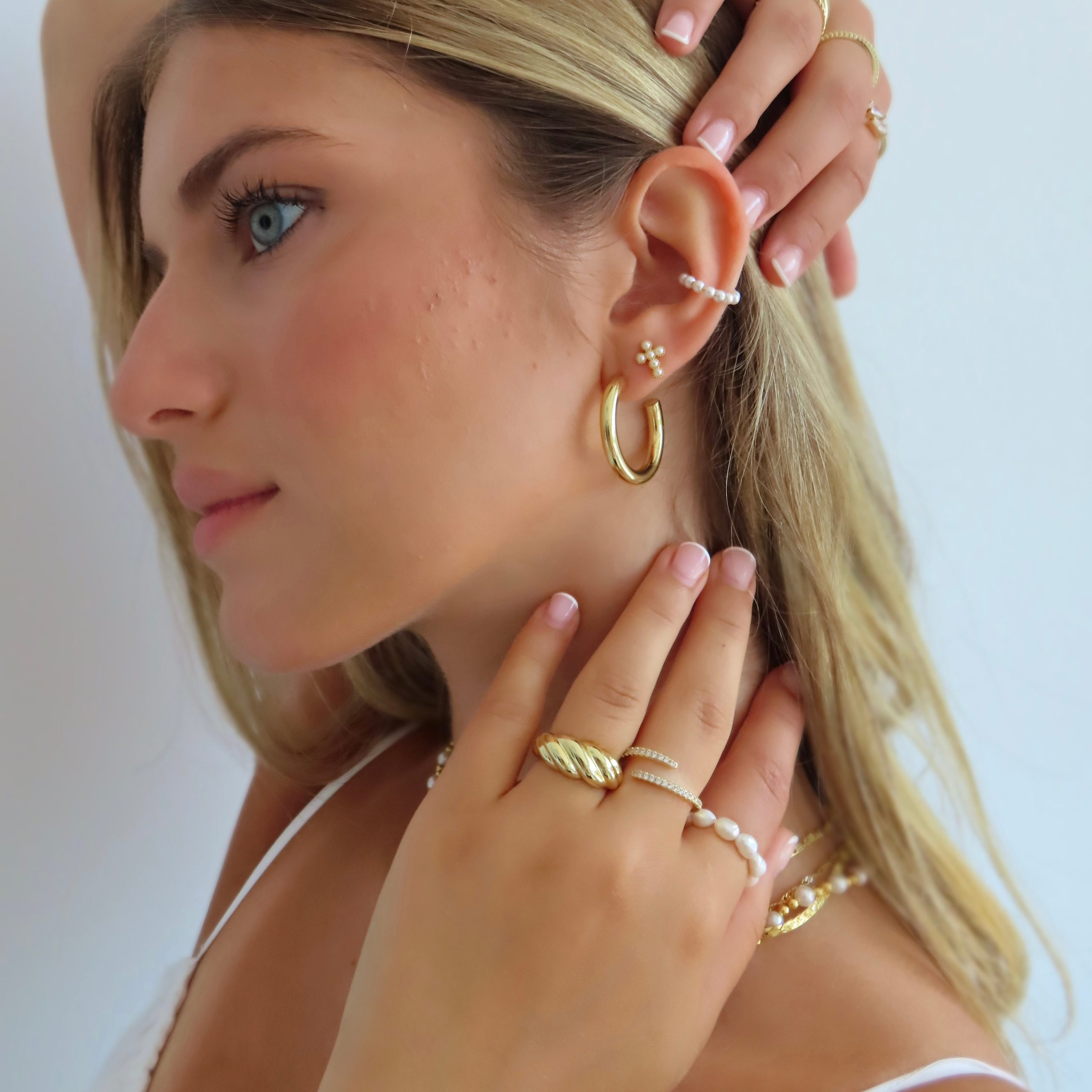 Slip into something chic and chewy with this stunning Pastry Ring! It’s a croissant dome shape with a chunky ring design. so look good while feeling good. Ready to treat yourself? Throw on this doughy accessory and you’re good to go!