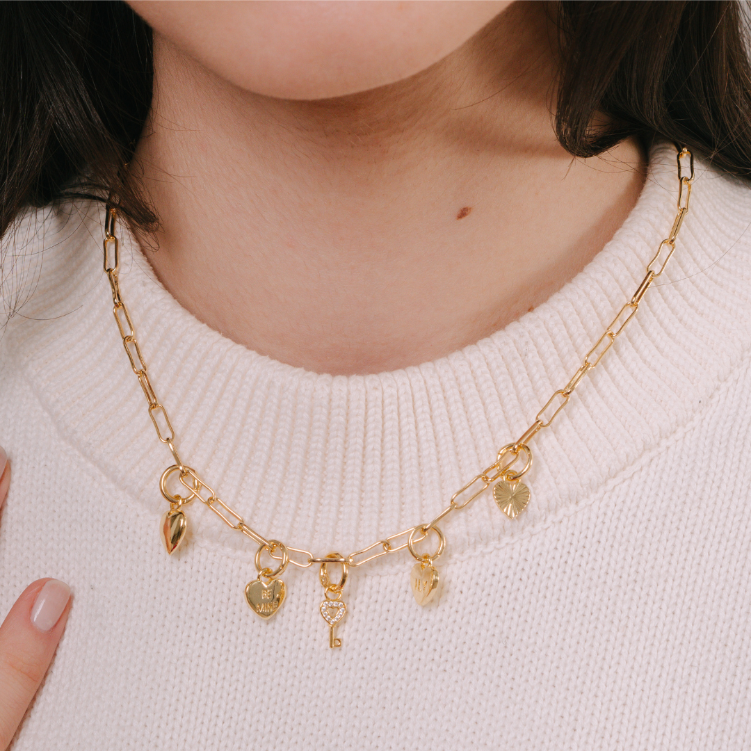 Unlock the key to your heart with our Wanna Be Yours Charm. This adorable charm features a heart-shaped key pendant adorned with sparkling pav?? stones. Show off your love and add a touch of cuteness to any outfit with this charming accessory.